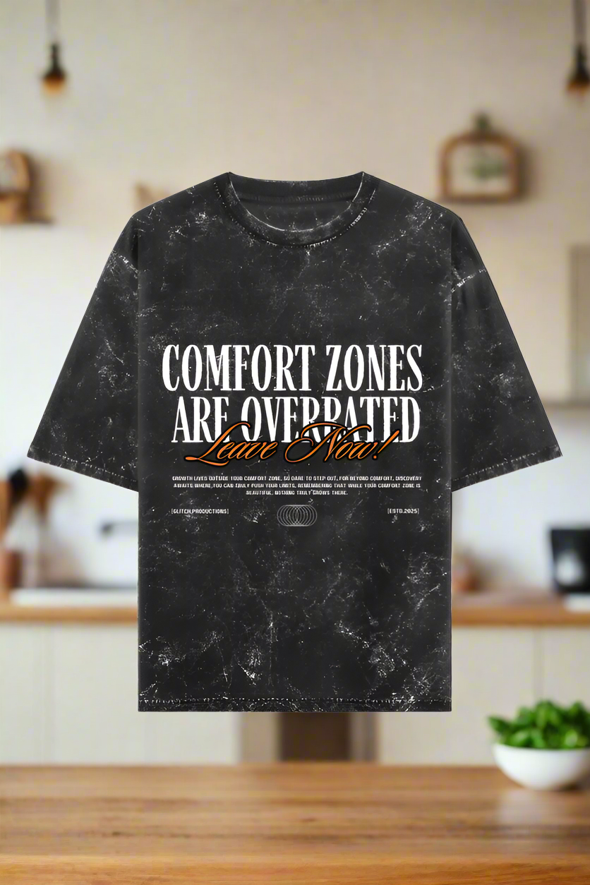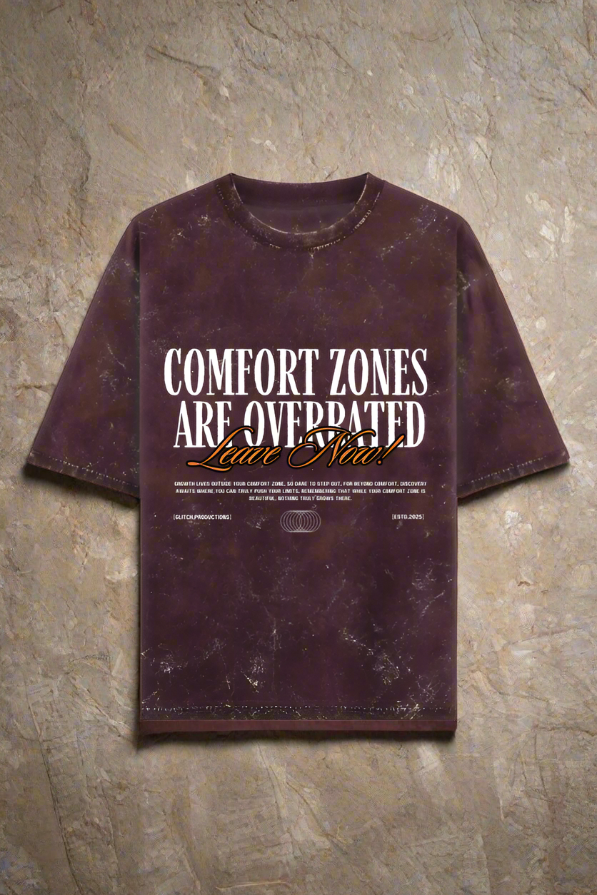 Break free from the ordinary and redefine your boundaries with our "Comfort Zones Are Overrated, Leave Now!" Glitchwear Acid Wash T-Shirt. This isn't just a tee; it's a bold statement, a raw, real, and unapologetic call to action for those who dare to grow.