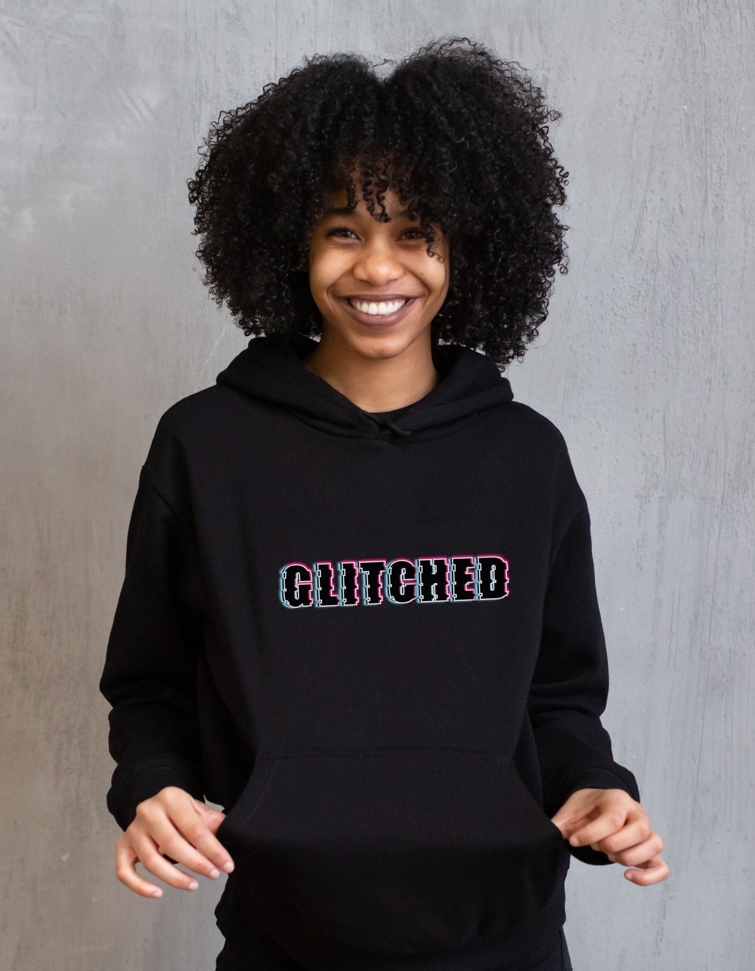 This hoodie showcases a striking “GLITCHED” graphic that brings the raw energy of digital distortion to life. Featuring a layered neon outline in cyan and magenta with a fragmented glitch effect, the puff print elevates the typography into a bold, tactile experience. The retro-futuristic font and pixel interference styling perfectly echo the chaos of a corrupted signal—ideal for glitchcore lovers, underground fashion enthusiasts, and those who wear visual rebellion as their identity. A statement piece that captures the pulse of modern glitch culture.
