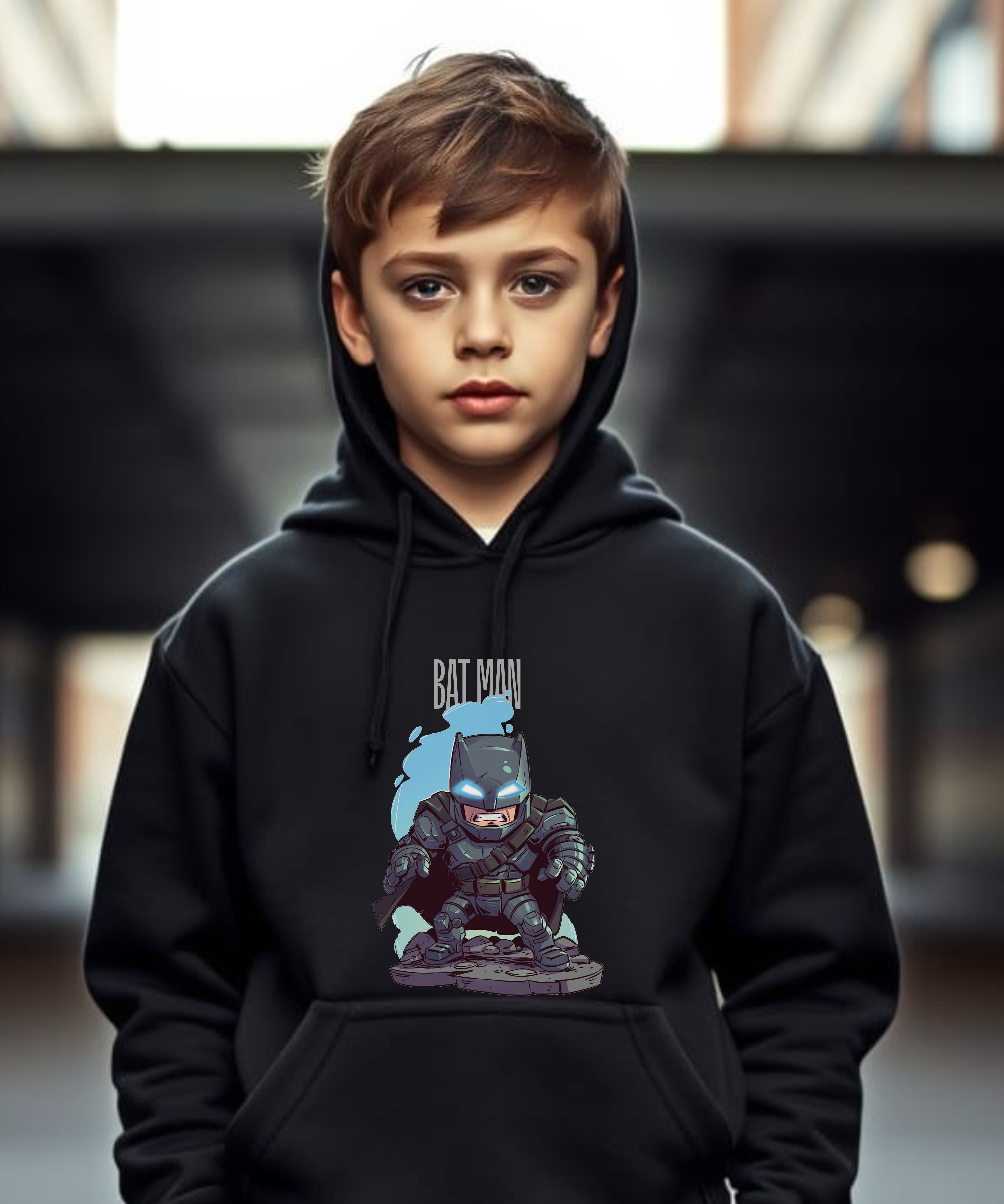 This design unleashes a dark and gritty mini vigilante clad in a full armored suit, standing battle-ready on rugged terrain with glowing eyes and an intense stance. Every detail — from the reinforced plating to the utility straps and clenched fists — adds a punch of urban hero energy. The icy blue backdrop accentuates the dark armor, creating high-contrast drama perfect for fearless kids who love the mystery, power, and strength of shadowy legends. A statement piece from the Lil Punks line, it’s made for the ones who never back down.